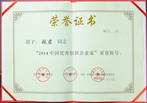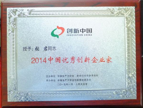 2015年1月18日,以“中國式創(chuàng)新—捕捉新常態(tài)下的新機遇”為主題的”創(chuàng)新中國—中國企業(yè)創(chuàng)新論壇2014年年會”在北京人民大會堂隆重舉行,陜西盟創(chuàng)納米新型材料股份有限公司總經(jīng)理張君,以其在企業(yè)經(jīng)營管理創(chuàng)新中的卓越表現(xiàn)被授予“2014中國優(yōu)秀創(chuàng)新企業(yè)家”榮譽稱號。
